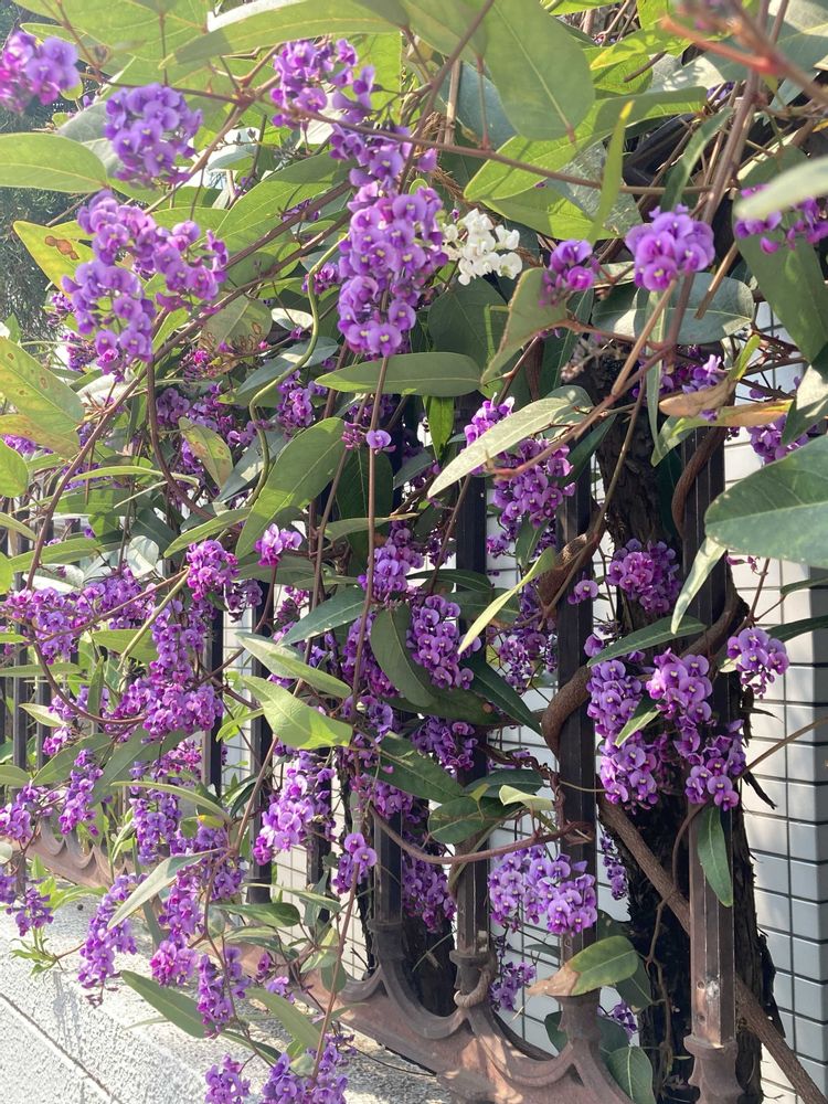 柵に這わせたハーデンベルギア素敵*。・+(人*´∀`)+・。* いろんな植物を道路側に這わせてる家を通るといつも見とれてしまいます。掃除大変じゃない?😅