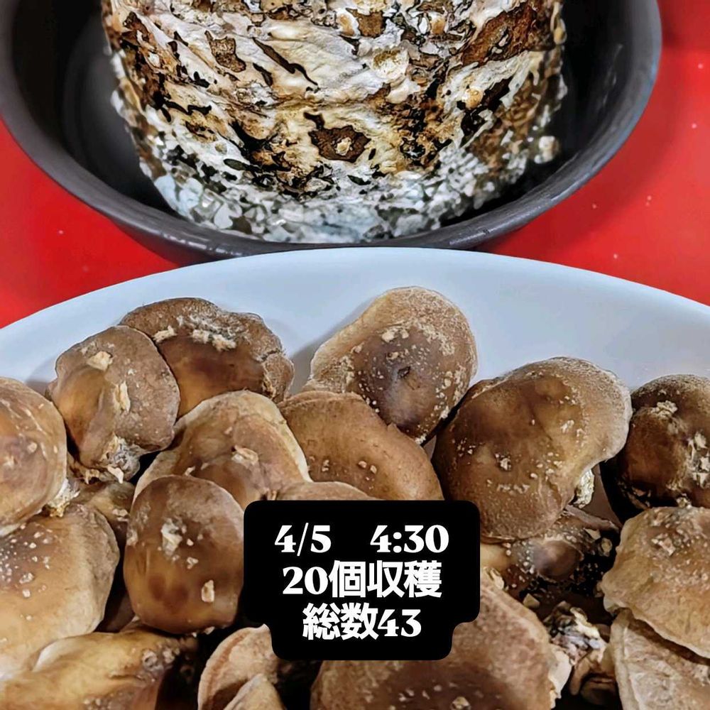 今朝、第一期収穫の最後。小さめも込みで20個収穫🍄🟫しました〜✌。