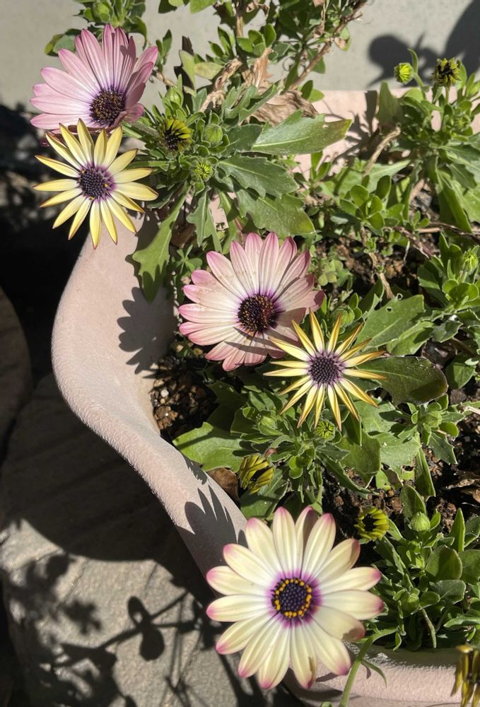 オステオスペルマムは、鉢植えで、涼しい日陰で、そのまま夏越しをしましたが、枝が乱れて綺麗な形に咲きません!