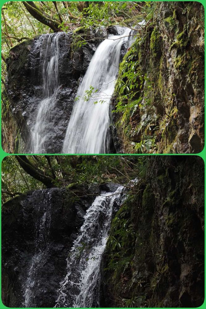 ③④⑤白玉の滝です。③雌滝、④雄滝の全景、⑤雄滝の滝口です。⬆️⬇️はシャッタースピードの違いです。⬆️ロースピード、⬇️ハイスピードです。このカメラ、まだよくわかりません。