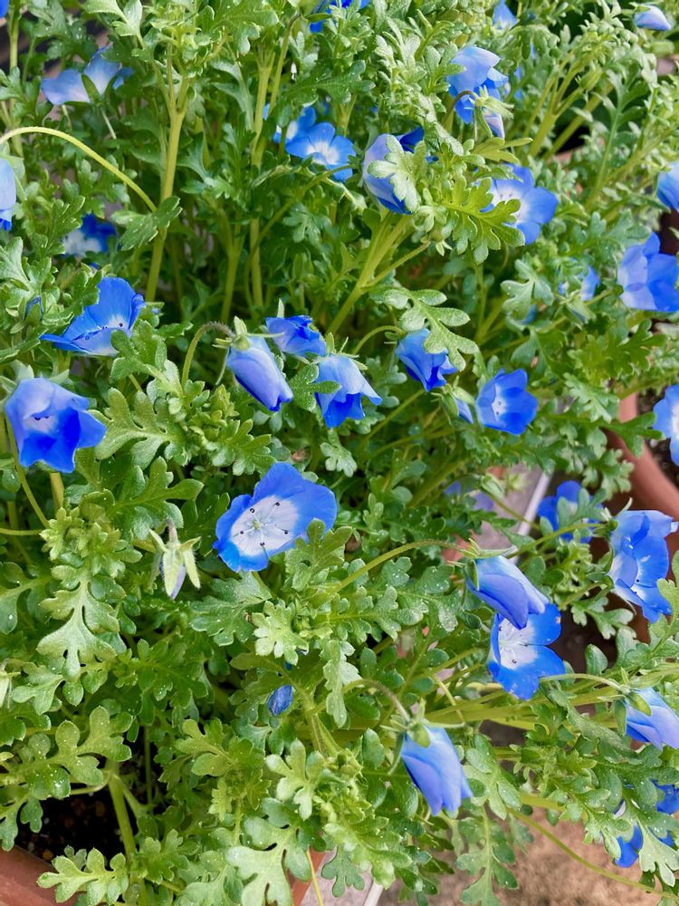 ネモフィラ、購入時期が少し早かったのでしばらく変化なかったのですが、ここ数日でモコモコしてきました🩵