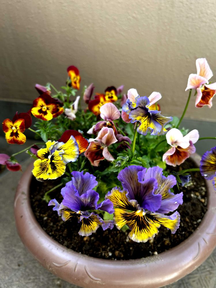 雨☔️の降っていた頃、花を見たくて、花屋さん💐に行ったら、お手頃価格の季節終わり頃のパンジーとビオラが奥の棚に追いやられていました😫