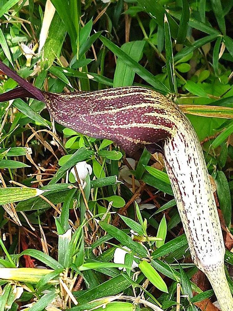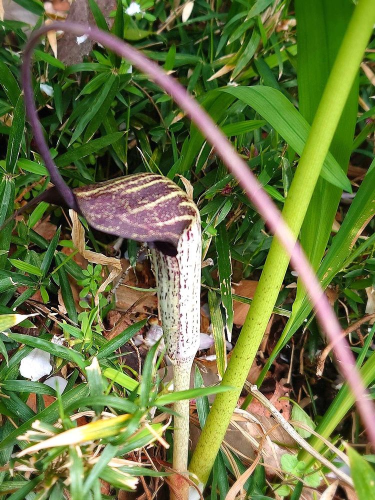 my Garden🌼の桜🌸の木の下で、久しぶりにウラシマソウさんを見つけました👀✨️一瞬🐍に見えてドキっとしました😱💦長いヒゲ?竿?