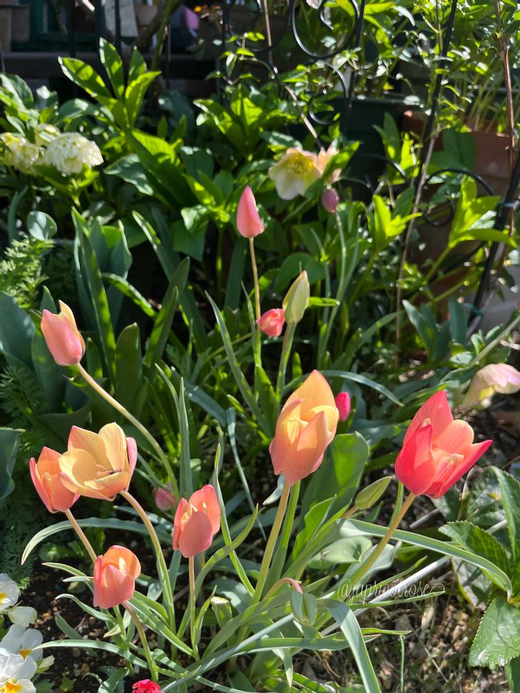 ①昨日蕾だったチューリップ・クリサンタ🌷が開きました✨