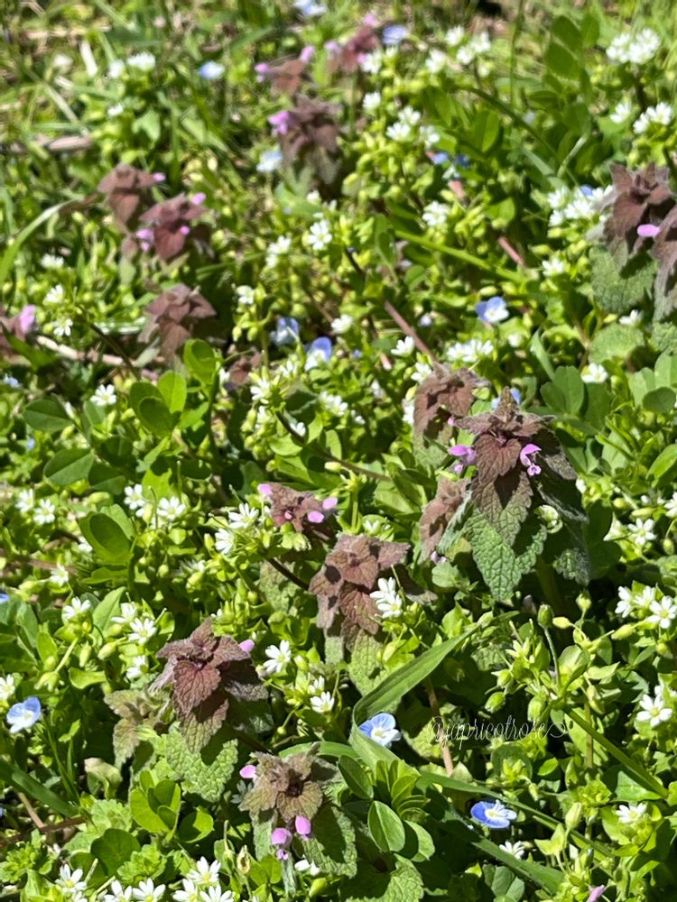 ⑤昨日の公園の野草の花たちの絨毯✨いろいろな小花がたくさん咲いていて可愛い🥰