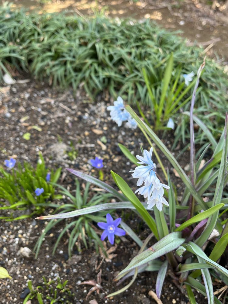 ハナニラ、むすかり×2、ハナダイコン、プスキニアとチオノドクサ🩵💙💜🩵💙💜