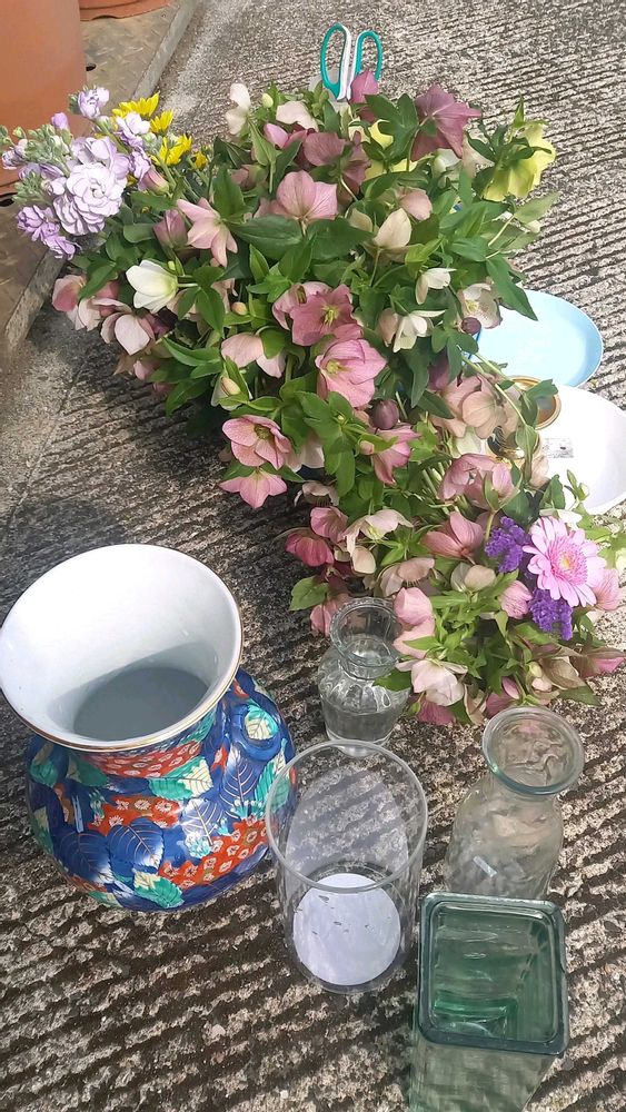 さん、クリスマスローズでいっぱいなのに、お花をもらってしまい更に大変なことに🤭