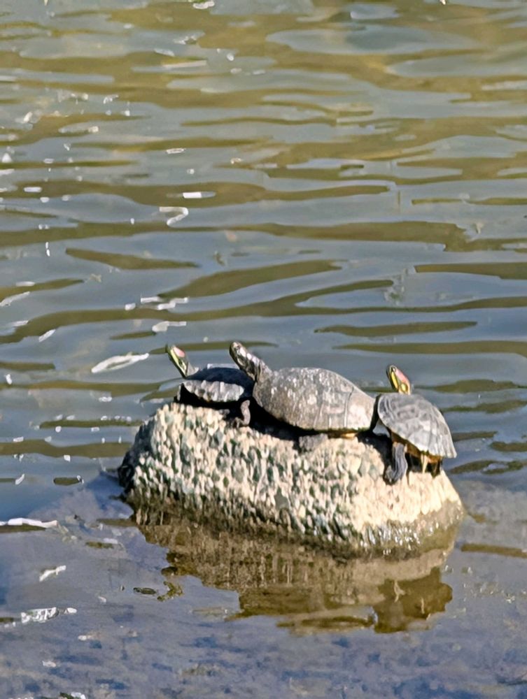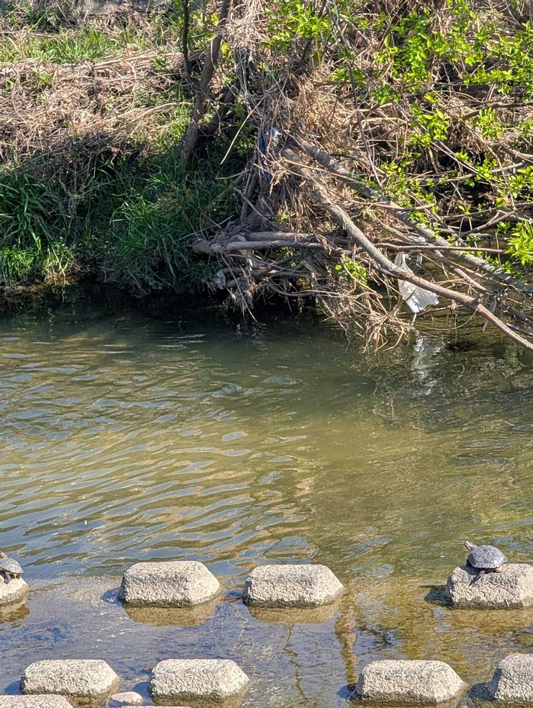 Googleフォトが「思い出を振り返りましょう」と題して🍀😊✨2025年4月4日㈮💐昨日🧑🍳お料理教室に行く途中、豊田市駅からのフラワーロードに咲いていました~♬♬帰りに、近所の小川で日向ぼっこの亀🐢ʚïɞ.•*¨*•.¸¸♬