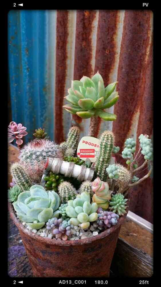 さん、おはようございます(^-^)も〜みんな嬉しい事言ってくれるので、今日もがんばって寄せ植え作るぞ〜\('ω`)」サボテンとミックスする時は、サボテンだとお水好きな子や強い子、、多肉も強い子や古株メインでセダムも強い子いれますよ👌