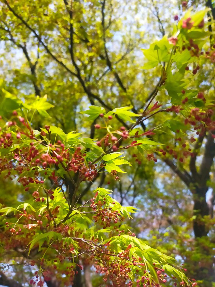 モミジの真っ赤な蕾がたくさん