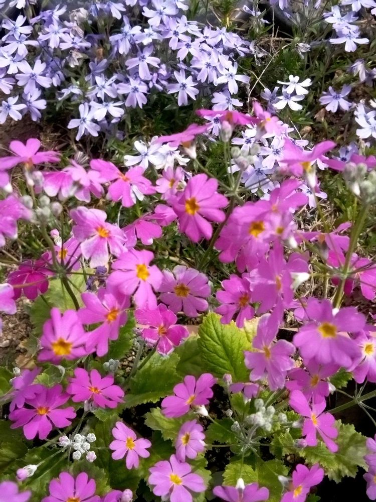 ミドさんのお庭、可愛い桜草がもりもり咲き誇って、ピンクと淡いパープルのじゅうたんの様でしょうねー