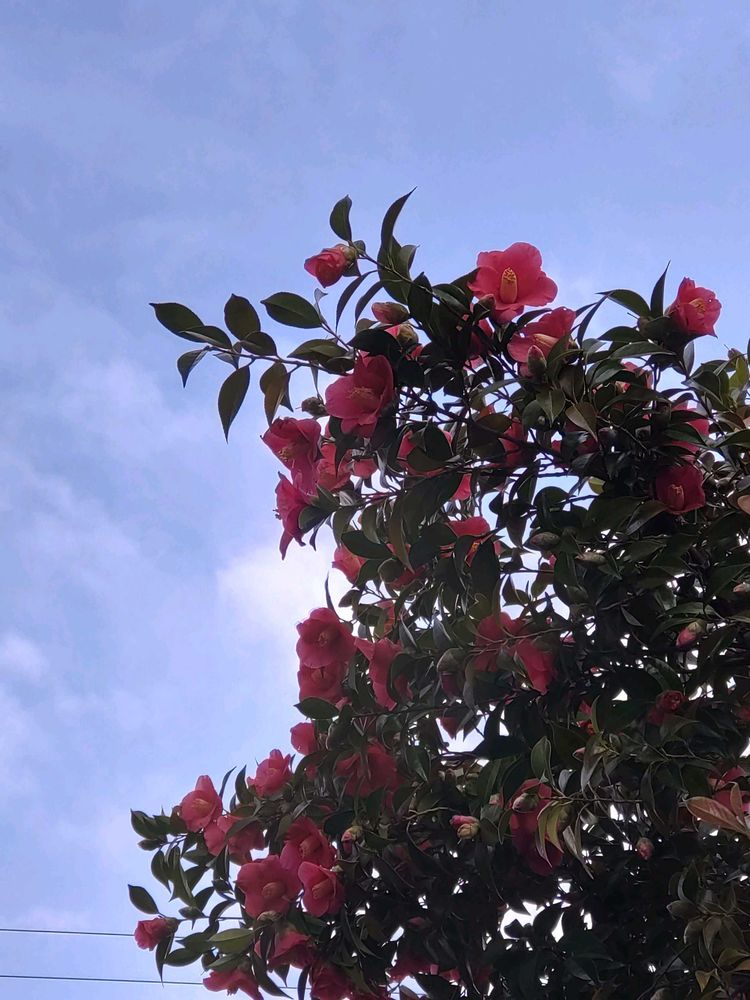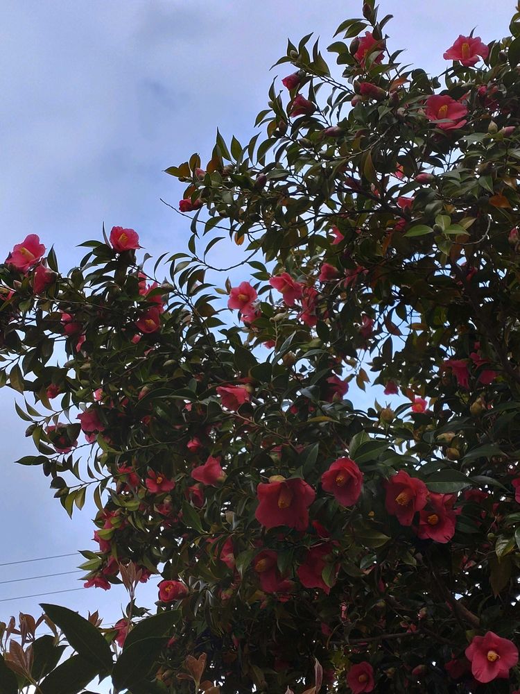 今年はツバキの木にお花が鈴なりでびっくり