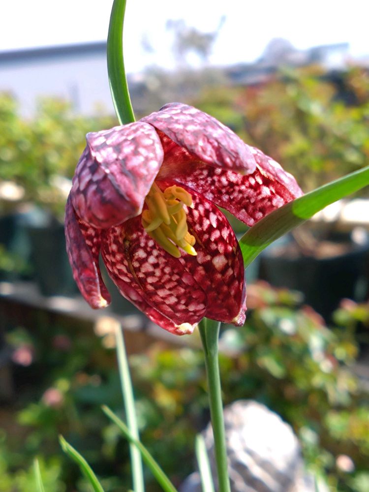市松模様の様で可愛いんですよ❤ バイモユリの仲間ですᵔ֊ᵔ 今年は1輪だけだけど😅