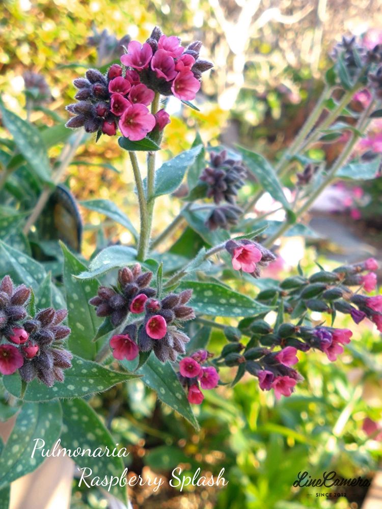 ④プルモナリア・ラズベリースプラッシュ……どうも上向いて咲くより横に伸びて咲く方が好きみたいな子😅