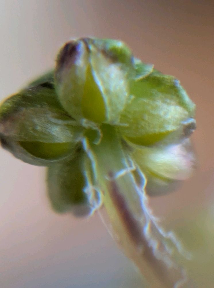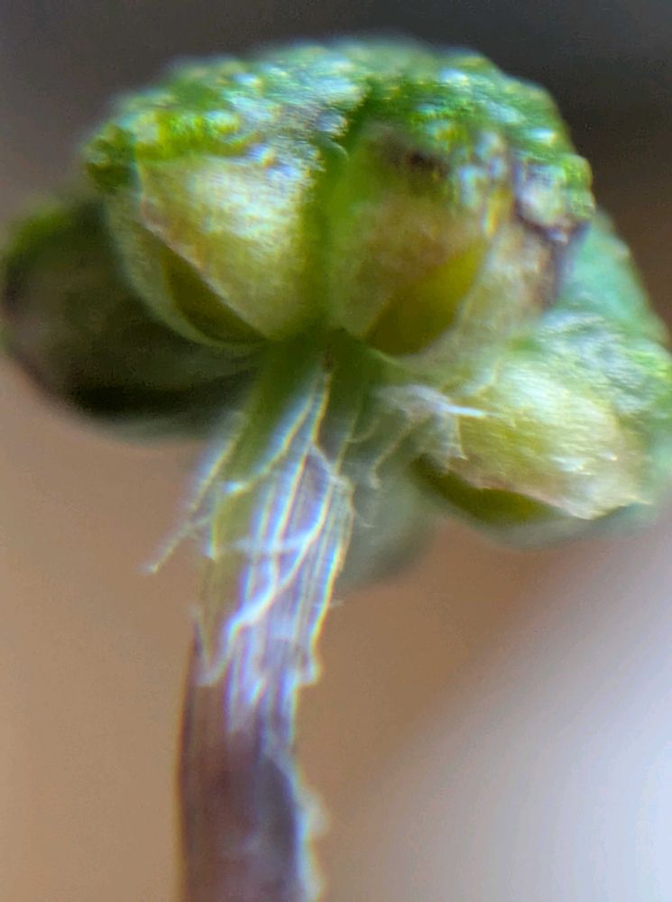 ②緑のキノコのような雌器床を横から見ると、下側に丸い形が見えます