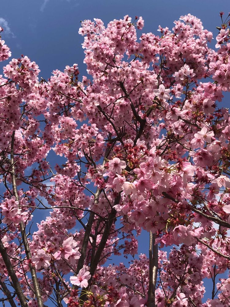 万博公園にて、ソメイヨシノの近くで、ピンク色の「河津桜」が咲いていました。📸🌸😊😄👌