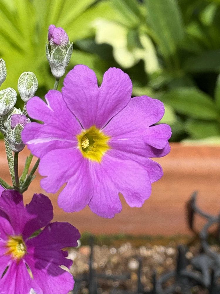 中庭のプランターに何故か小さいサクラソウが1本だけ