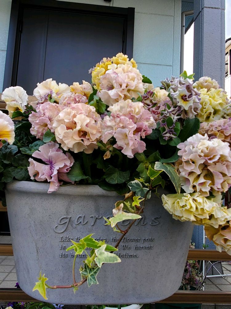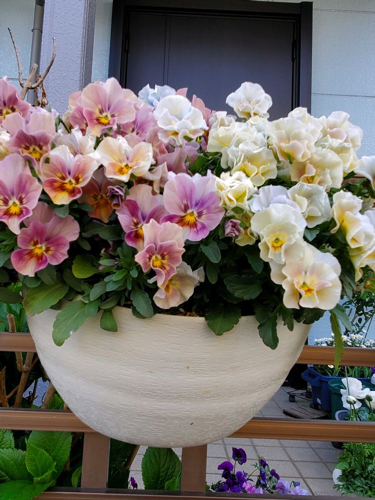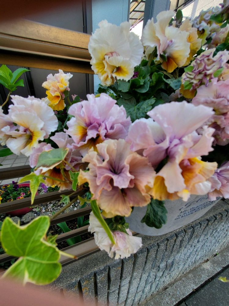 暖かい日差しに思わず、笑顔になって舞い踊る様に咲き誇るローヴ、ドゥ、アントワネット(パンジー)の華やぎ素敵だなぁ🎵✌️