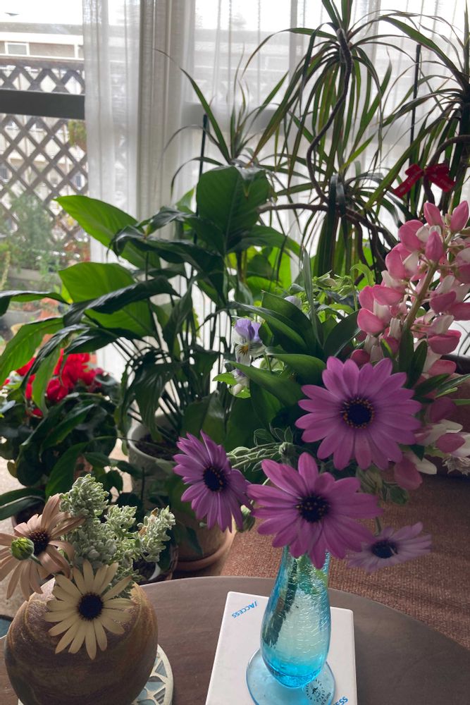 折れたルピナス…一杯咲いてるオステオスペルマムも花瓶へ