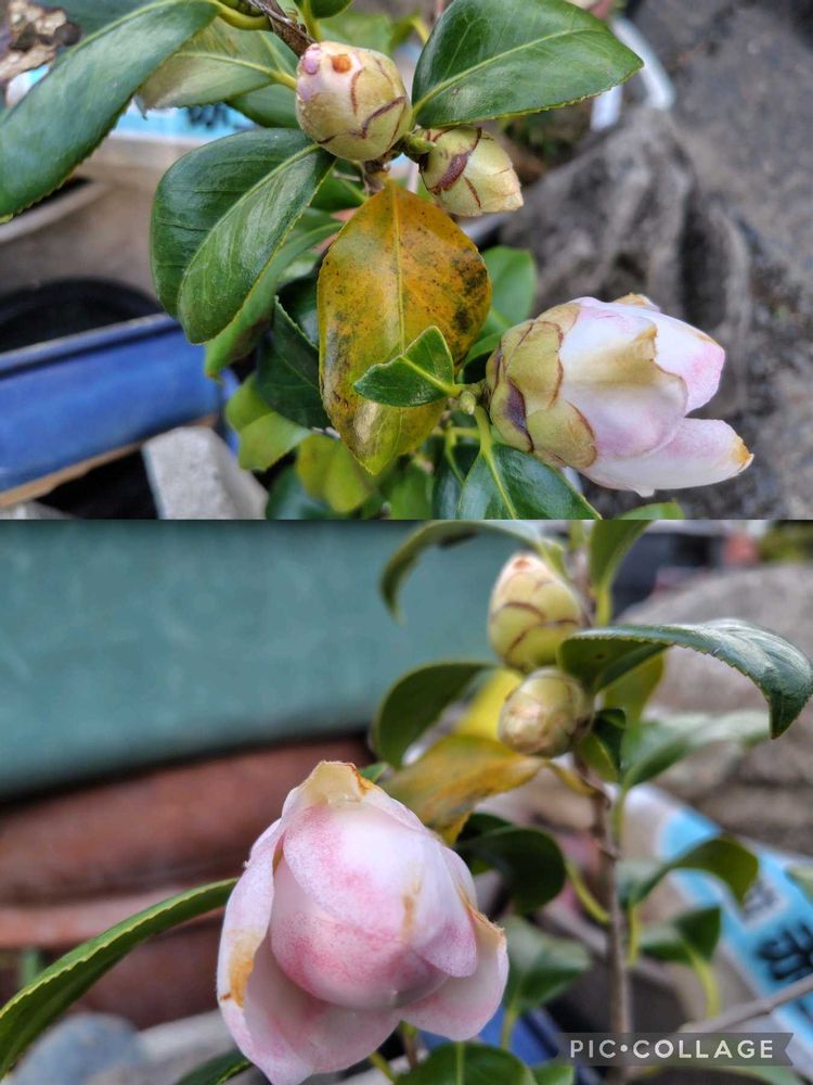 椿 寒さで花が傷んで 綺麗に咲いてくれません 🥲