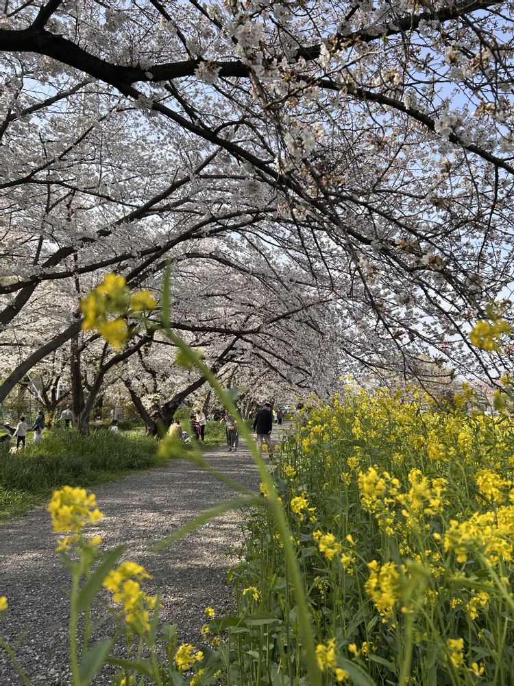 桜のトンネル🌸🌸🌸と菜の花💛💛💛のコラボ綺麗ですね❣️