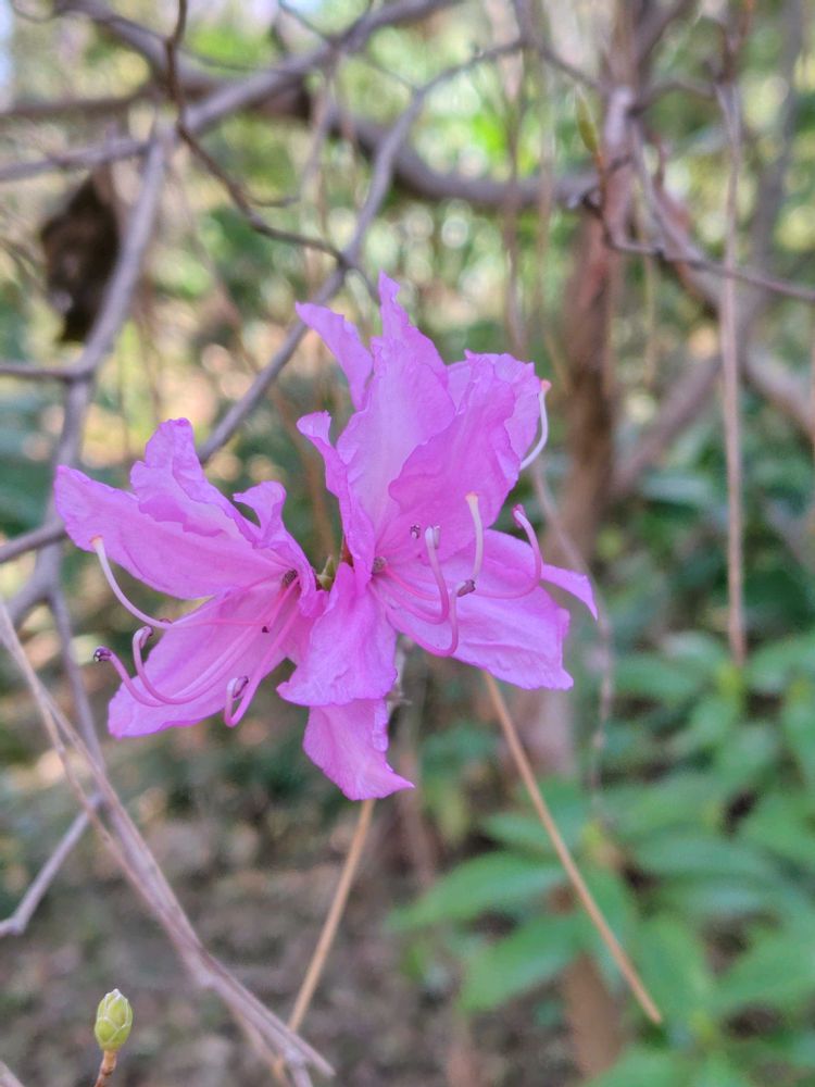 花柄を触っても粘らない、各花芽に1輪の花が咲く点がミツバツツジと異なる。