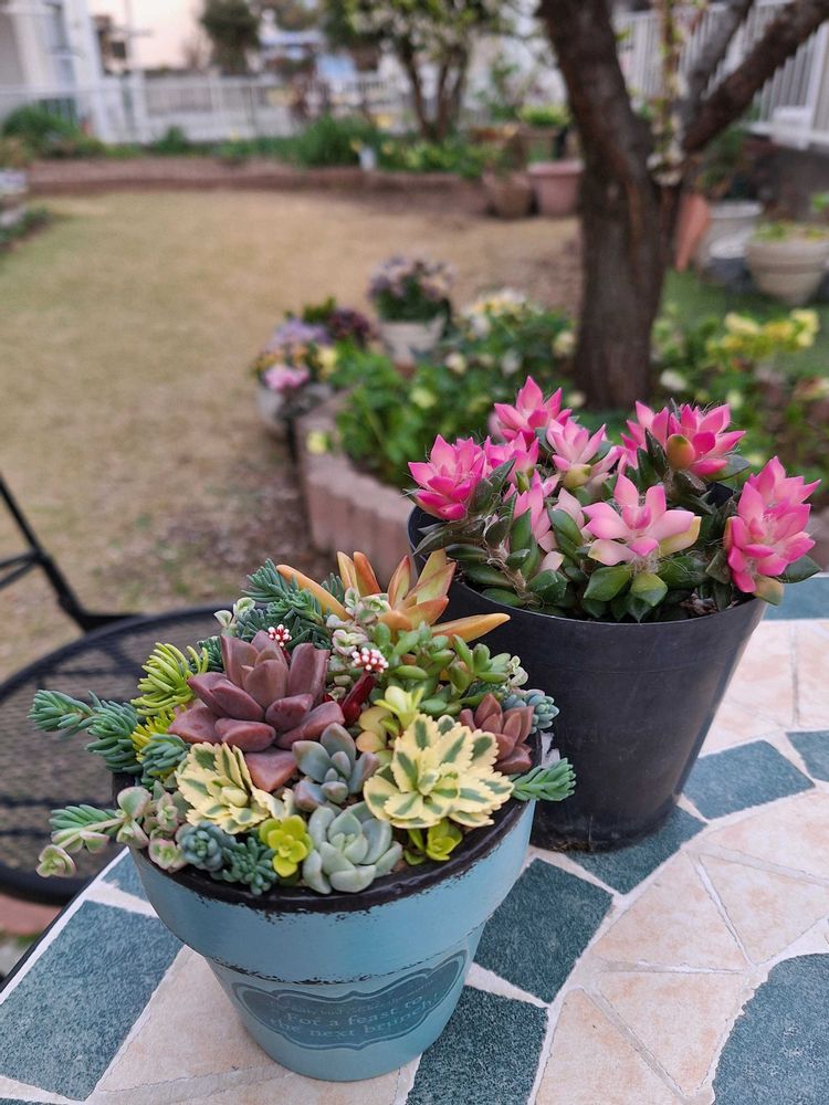 寄せ植え可愛い💕今日は花友さんとローズガーデンカネコ→フラワーG泉→サボテン団地に行って来ました。