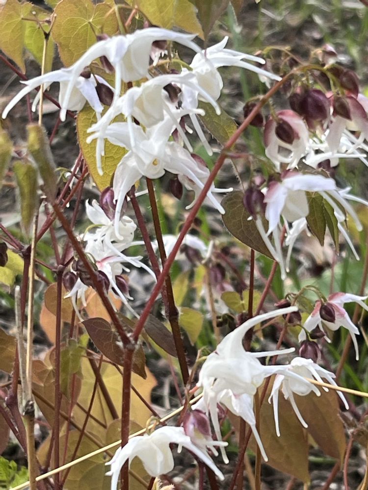 植物園の赤と白のイカリソウ素敵💓