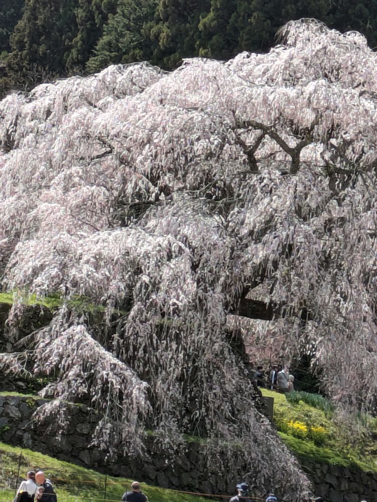 又兵衛桜、大きな木で迫力がありますね、まるで滝の様な流れの枝垂れ桜です