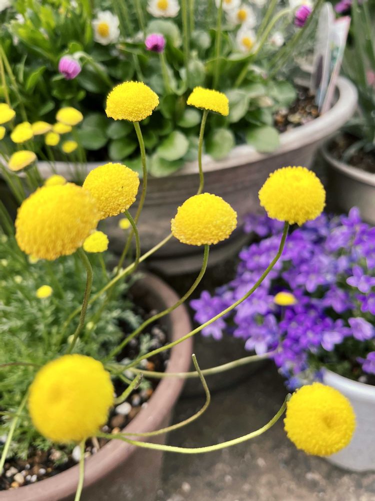一年草種。黄色いポンポン咲きで緑葉です。暑さには非常に弱いので極力風通しの良い半日陰で管理が良いみたいです。夏越しが難しいみたいです😕