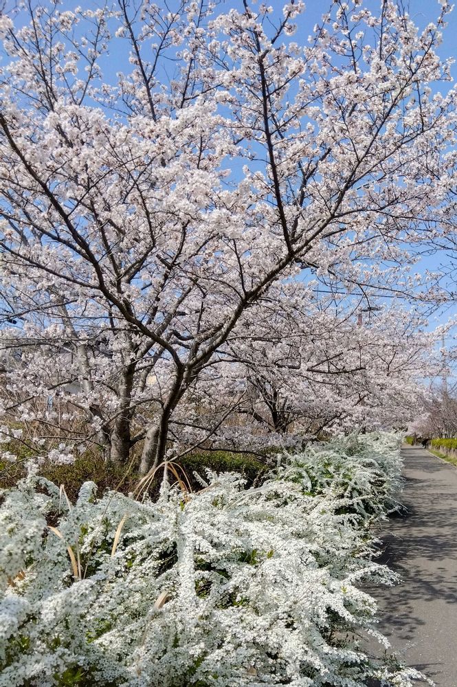 お花見行けなくて、散歩道を楽しみました🌸ユキヤナギとのコラボがステキなんです🤍🌿