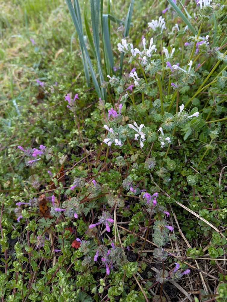 スズシロさんの白いホトケノザ,普通のホトケノザ,犬の散歩みちにての投稿画像