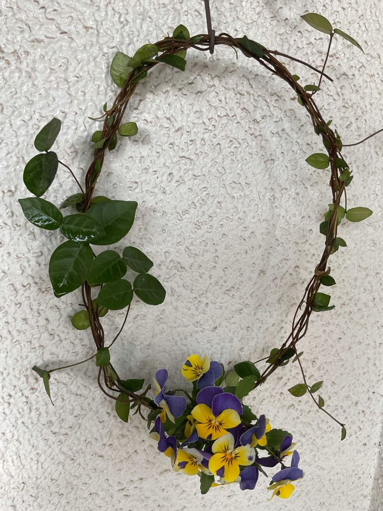 捨てる前に リース風に編んで、