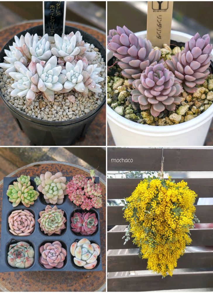 小型の群生って可愛いよね❣️ダドレア上手に育てられるのか分からないけどめっちゃお安かったのでお迎えしました🥰もりもりになったらまた見てね💕ミモザもこのスワッグで使えるのは終了😅昨日花部分は半分ほど剪定しました😊