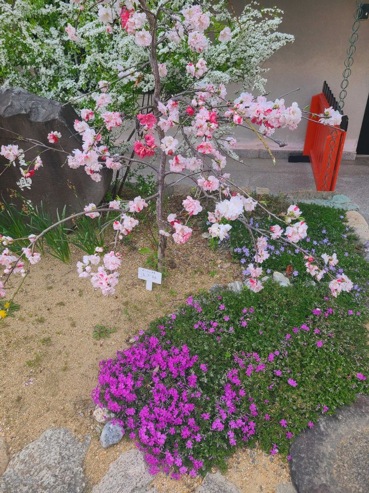 桜と源平桃と花手水