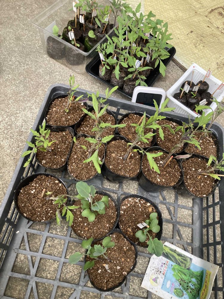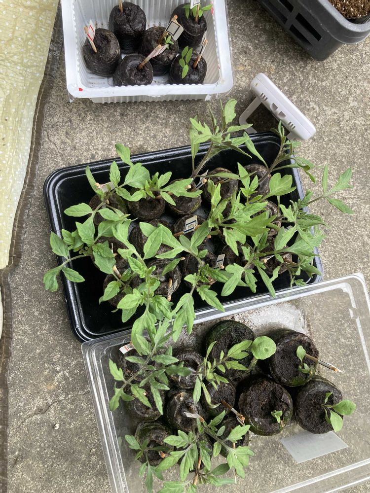 夏野菜の育苗、ジフィーセブンから育苗ポットへの植え替えをようやく行いました。