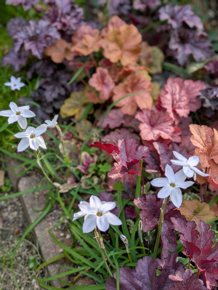 小さな花壇のヒューケラたちが