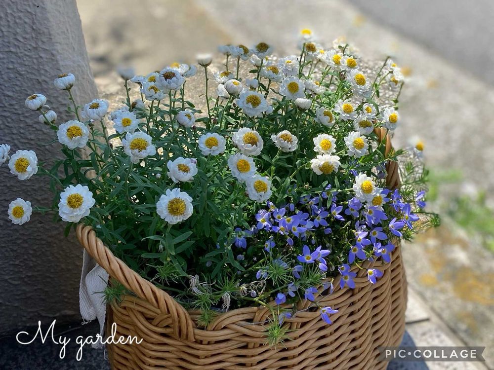 花かんざしとヒナソウの籠寄せ素敵になりましたね🤗💕