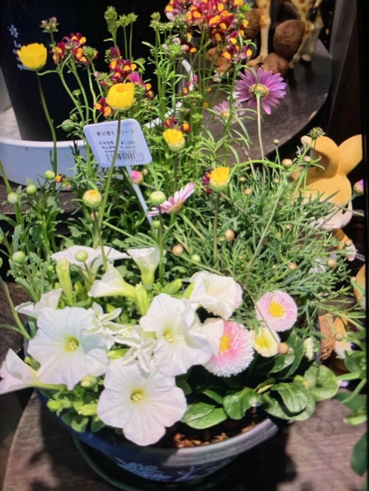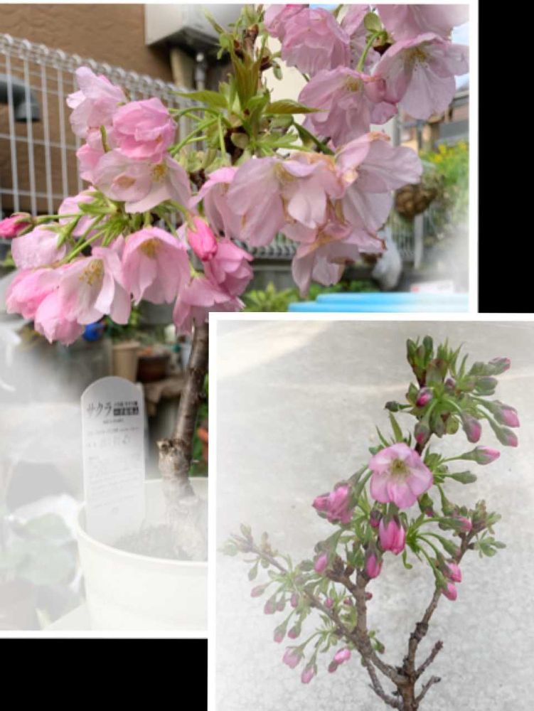 ①我が家の1番小さな旭山桜(50センチ)今日で満開です ②ご近所 ③④スーパーのお花コーナー