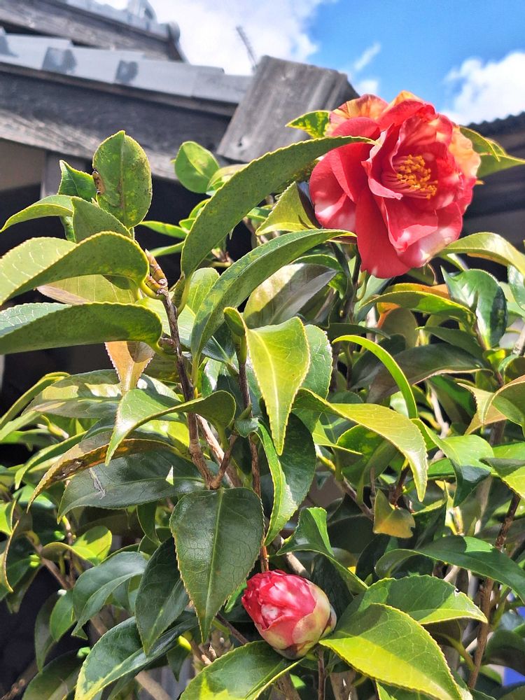 お蕎麦屋さん(そば玄)の入り口には椿の花❤️玄関にはユキヤナギと一緒に生けてありました🥰