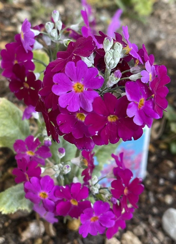 ①西洋サクラソウ(プリムラマラコイデス)こぼれ種から