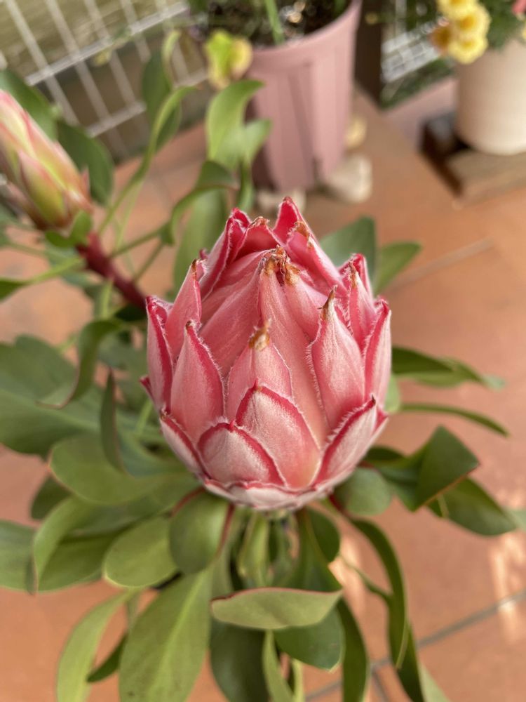 3枚目のプロテアはまだ咲いていませんが、形が面白いので今回お仲間に加えました🩷💜