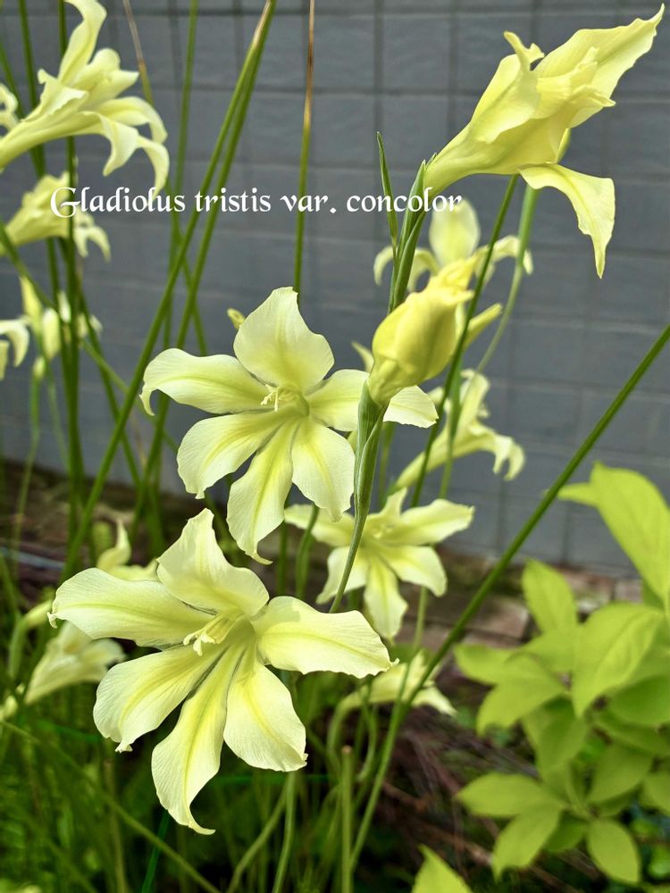 早咲きグラジオラス、可愛い色です。💚💛💚💛💚