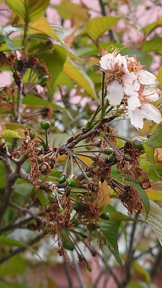 サクランボの木は花が終わり実らしきモノが〜🍒