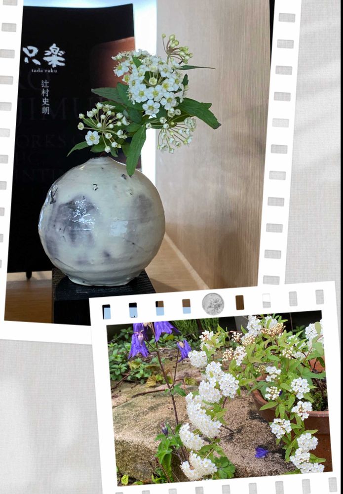 東京ドームで撮った 辻村史朗さん作の花瓶に入れられていたコデマリが素敵でした。