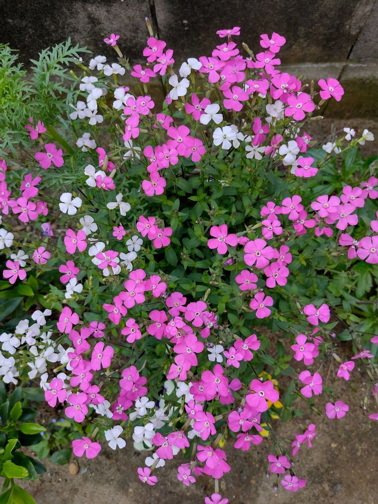 種まきっ子のシレネピンクパンサーとホワイトパンサー、満開に近いです。