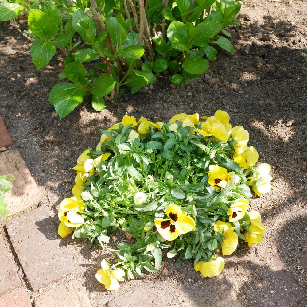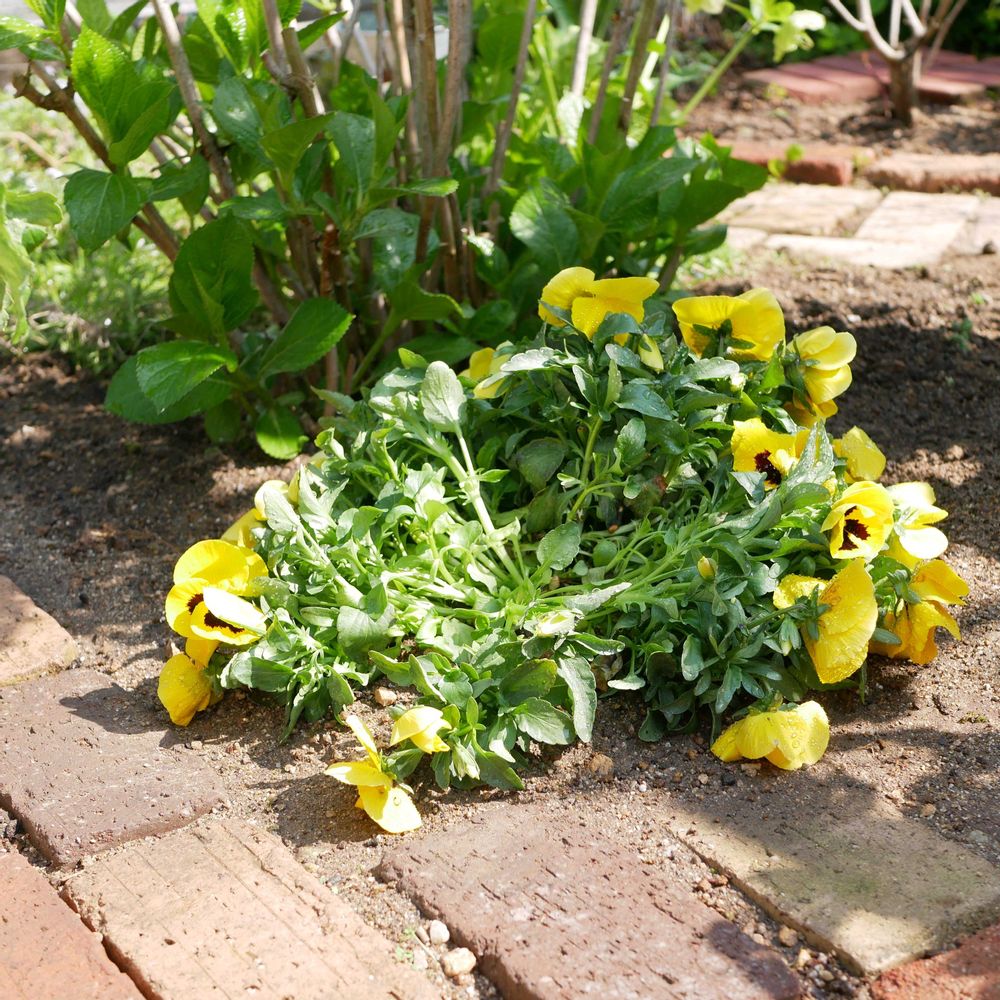 黄色のパンジーの鉢はちょっと浅いせいか最近毎日パッカーン落ち武者になってて地植えにしましたよ〜😆