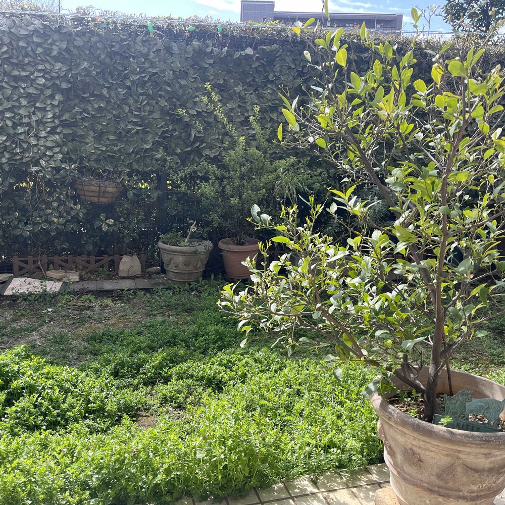 マンションの小庭とテラスで鉢植えのバラを中心にお気に入りの植物を育てています。