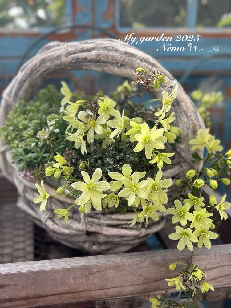 ① クレマチス・ペトリエイが咲きました、ちょっとライム色か可愛い💕