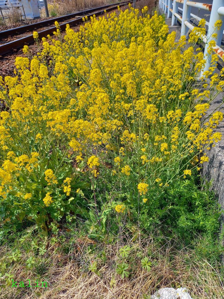 線路沿いの一角に菜の花が綺麗✨に咲いていました。黄色💛で目👀を引きました。